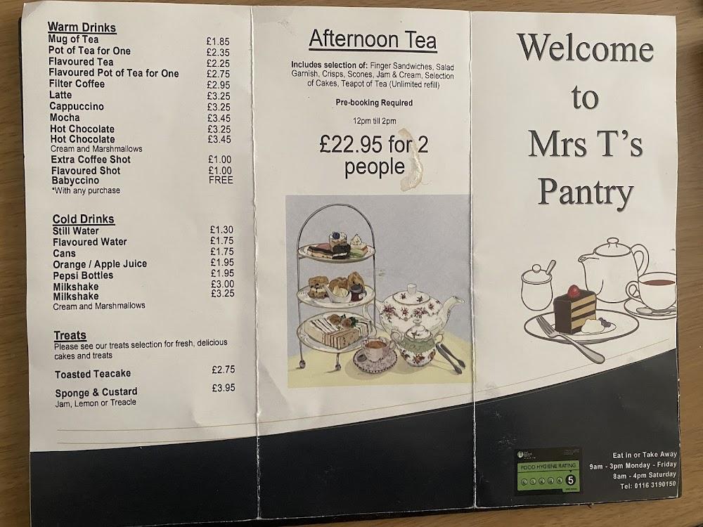 Nestled on Leicester Road in Wigston, Mrs T's Pantry offers a delightful escape from the hustle and bustle of everyday life. The café radiates charm, with its vintage-inspired décor and cozy seating arrangements, making it a perfect spot for a casual brunch or a quiet afternoon tea. The café is wheelchair-accessible, ensuring everyone can enjoy the experience. Customers regularly rave about the welcoming atmosphere created by the attentive staff, who treat guests like family. Their focus on homemade food means you’re in for a treat with every bite. It’s not just a meal at Mrs T's; it’s an experience that captures the essence of community spirit. Whether it’s a weekday pick-me-up or a leisurely weekend brunch, the café is a haven for comfort food lovers and coffee enthusiasts alike. With a mix of breakfast and lunch options, the menu caters to diverse tastes while retaining that classic homemade feel. Plus, enjoying a meal here doesn't break the bank, with most dishes priced between £1 to £10.